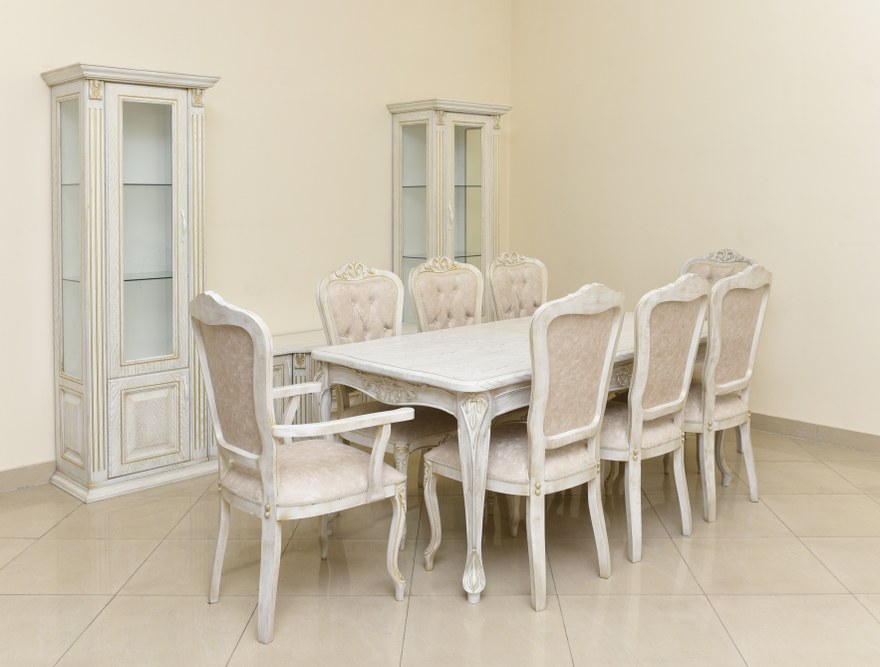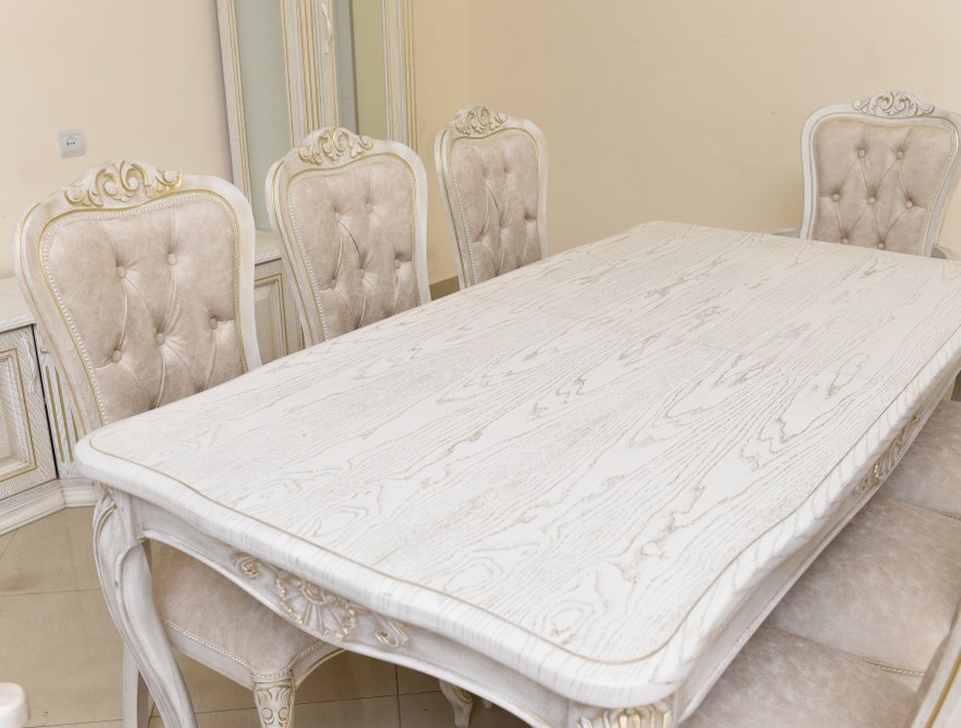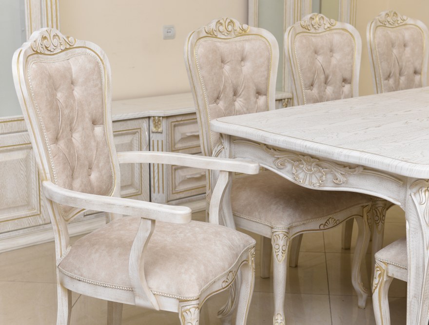 Փղոսկրագույն հյուրասենյակային կահույքը կընդգծի Ձեր խորաթափանց և բոհեմյան էությունը։ Իսկ հաճարենու փայտից պատրաստված աթոռների և սեղանի նրբաճաշակ քանդակները էլ ավելի կընդկծեն Ձեր բարձր ճաշակը։ Այն անտարբեր չի թողնի նաև Ձեր հյուրերին՝ իր հարմարավետությամբ և շքեղությամբ։