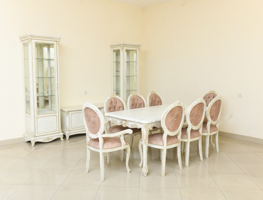 Փղոսկրագույն հյուրասենյակային կահույքը կընդգծի Ձեր խորաթափանց և բոհեմյան էությունը։ Իսկ հաճարենու փայտից պատրաստված աթոռների և սեղանի նրբաճաշակ քանդակները էլ ավելի կընդկծեն Ձեր բարձր ճաշակը։ Այն անտարբեր չի թողնի նաև Ձեր հյուրերին՝ իր հարմարավետությամբ և շքեղությամբ։
