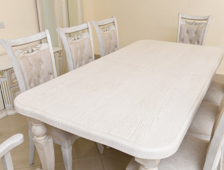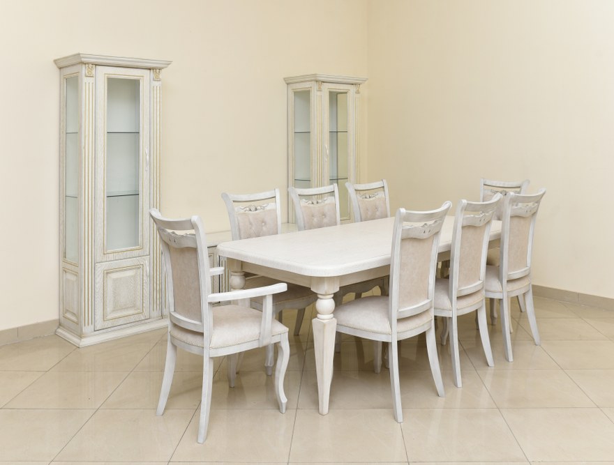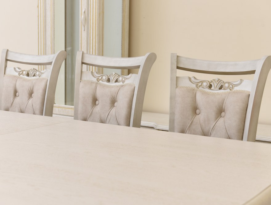 | ՆՅՈւԹ | Ընդհանուր հումքը՝ փայտ, շպոնապատ մդֆ։ Աթոռների և սեղանի հումքը՝ հաճարենու փայտ։ Ներկանյութ՝ էկոլոգիապես մաքուր ու բարձրորակ իտալական ներկանյութ, պատինա կոչվող լաքապատման նյութը շքեղ տեսք հաղորդելու համար։ |